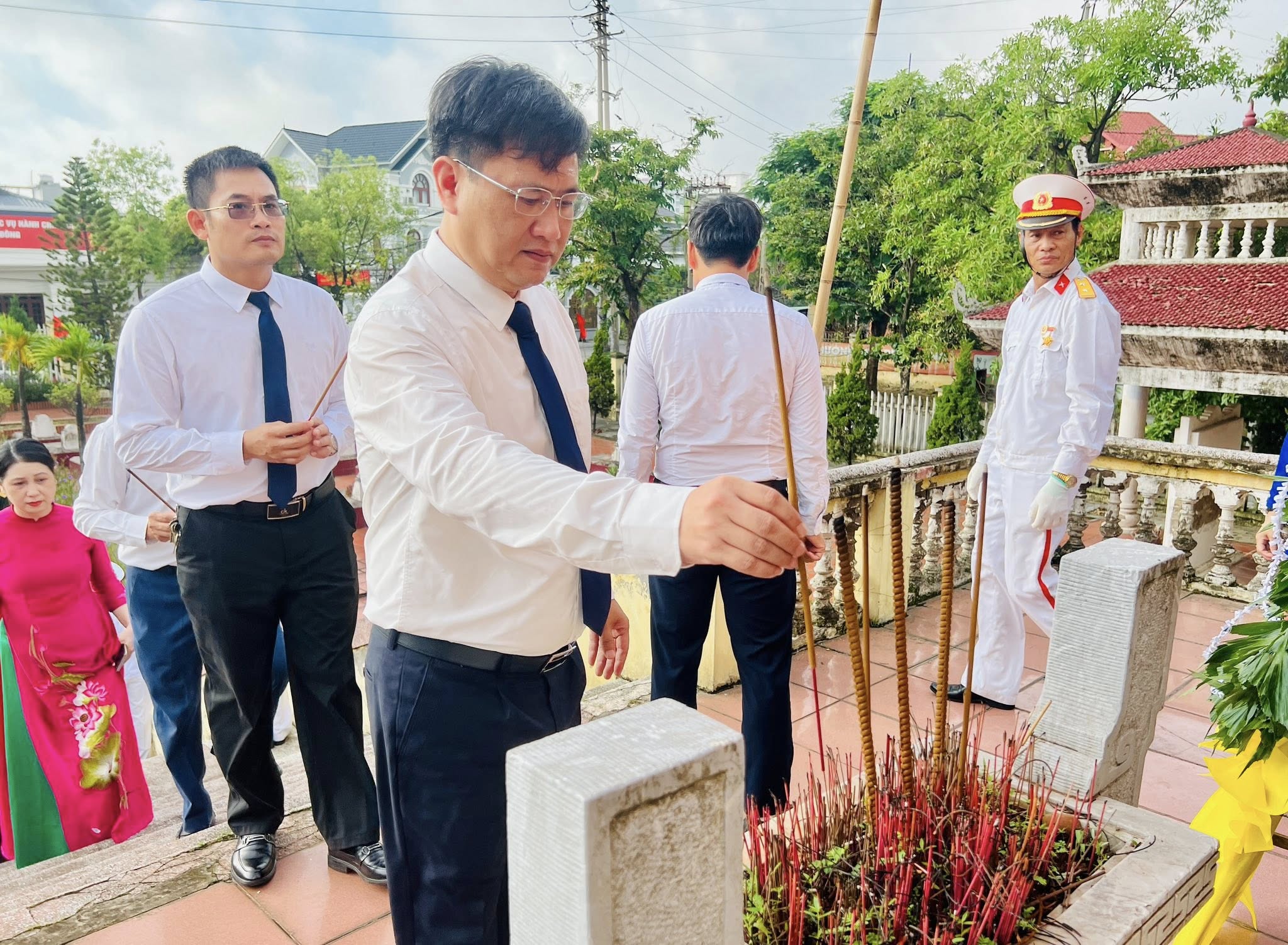 Trong không khí trang nghiêm, thành kính, các đại biểu đã dâng hương, hoa, nghiêng mình tưởng nhớ và bày tỏ lòng biết ơn sâu sắc trước sự hy sinh to lớn của các anh hùng liệt sĩ, những người đã ngã xuống vì sự nghiệp đấu tranh giành độc lập, tự do cho dân tộc.