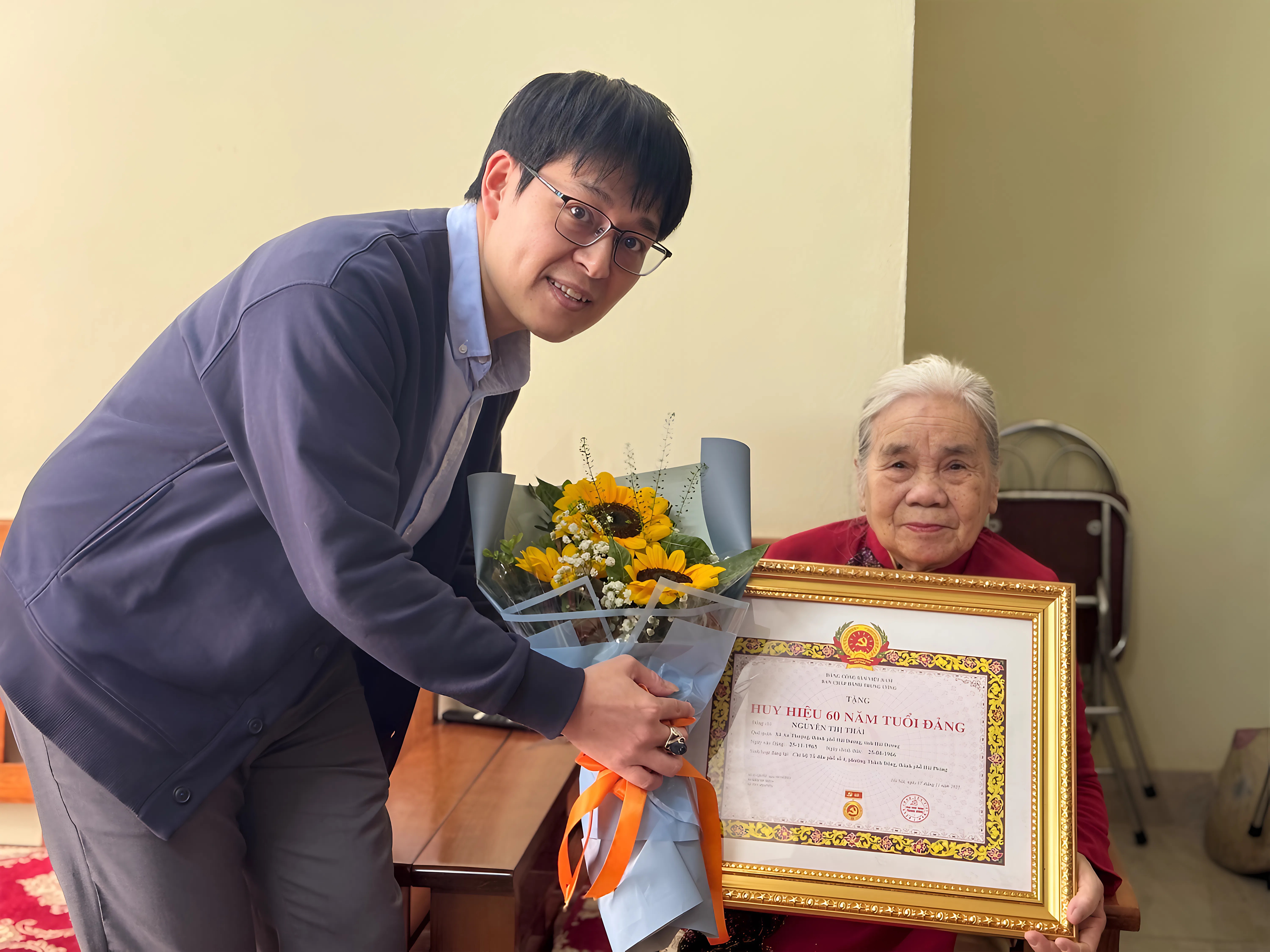 Đảng ủy phường Thành Đông tổ chức trao tặng Huy hiệu Đảng đợt 7/11/2025 tại nhà riêng các đảng viên.