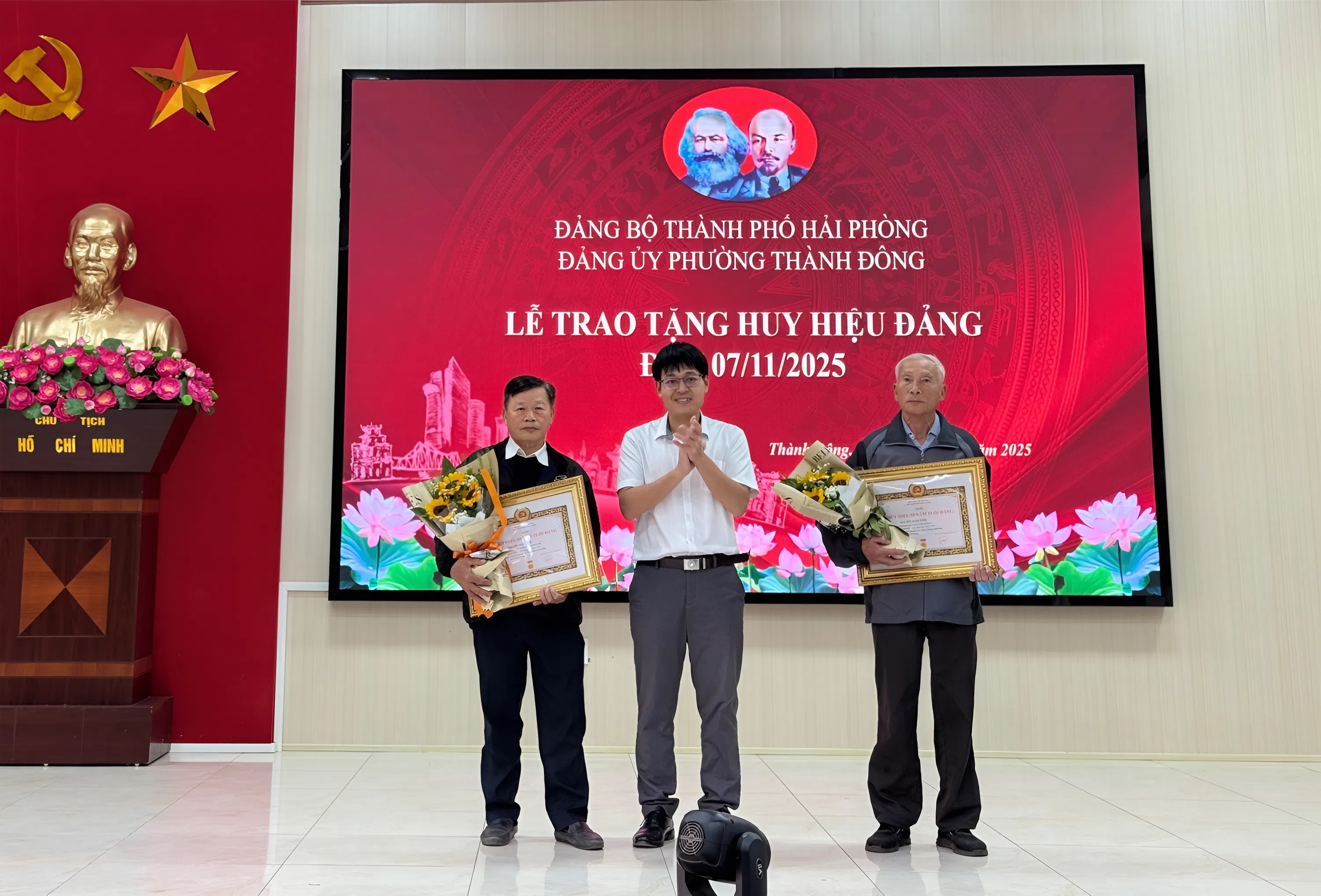 Tại buổi lễ, Đảng ủy phường Thành Đông đã trao Huy hiệu Đảng cho 7 đảng viên có tuổi Đảng từ 40 đến 60 năm. Trong đó có 2 đảng viên nhân Huy hiệu 60 năm tuổi đảng, 2 đảng viên 55 năm tuổi, 2 đảng viên 50 năm tuổi và 1 đảng viên là Uỷ viên Ban chấp hành Đảng bộ tỉnh Hải Dương trước đây nhận Huy hiệu 40 năm tuổi đảng