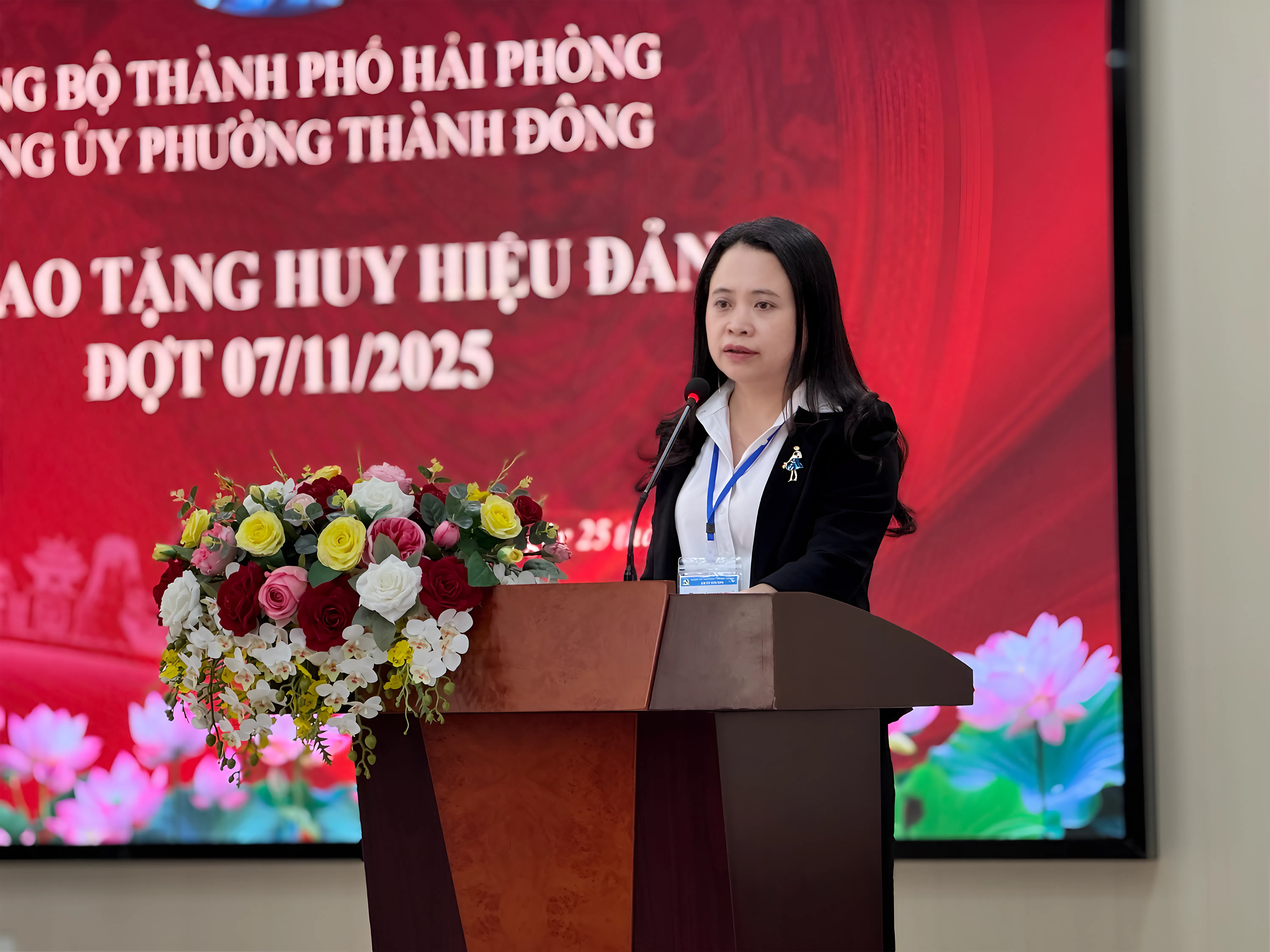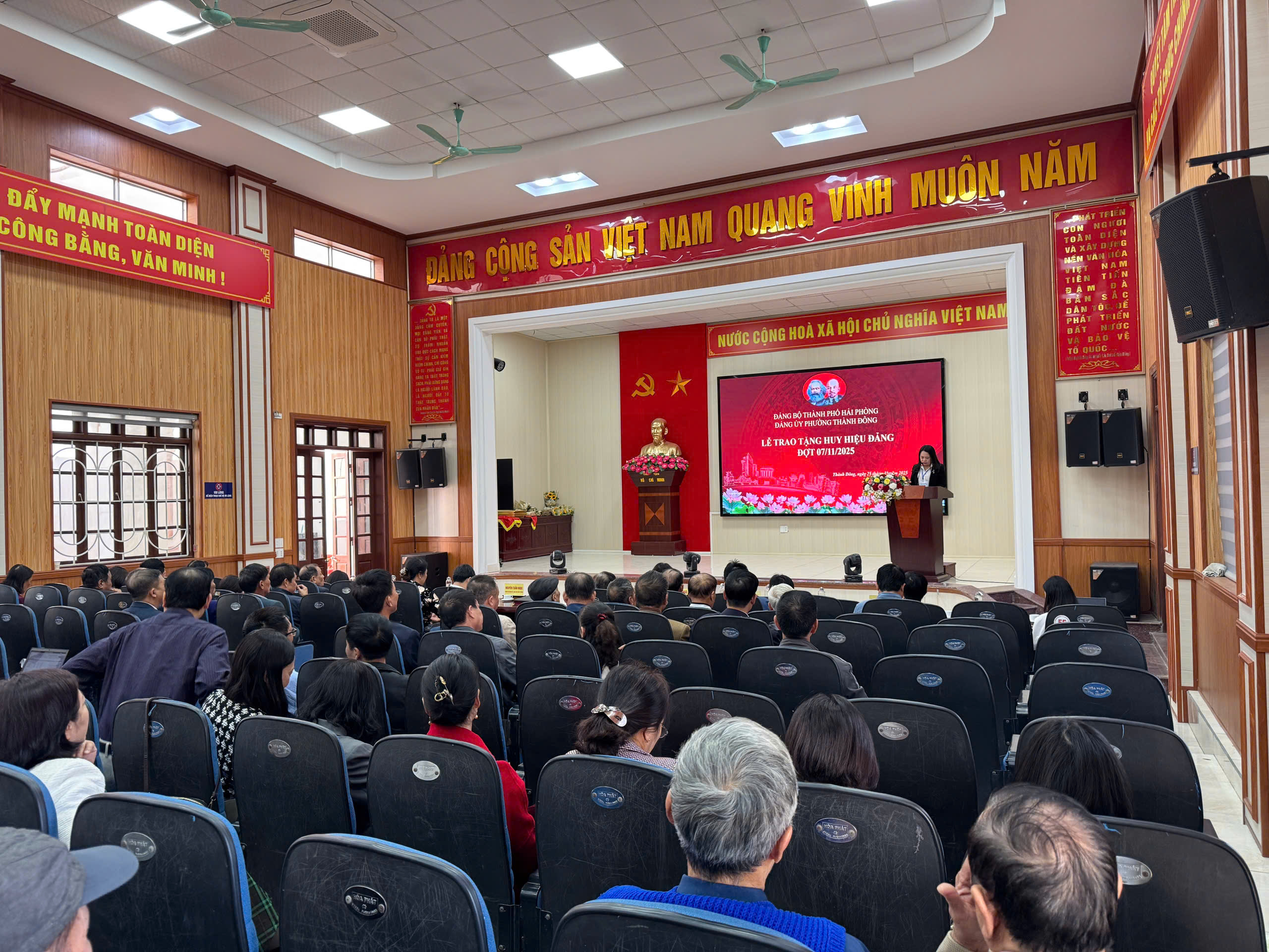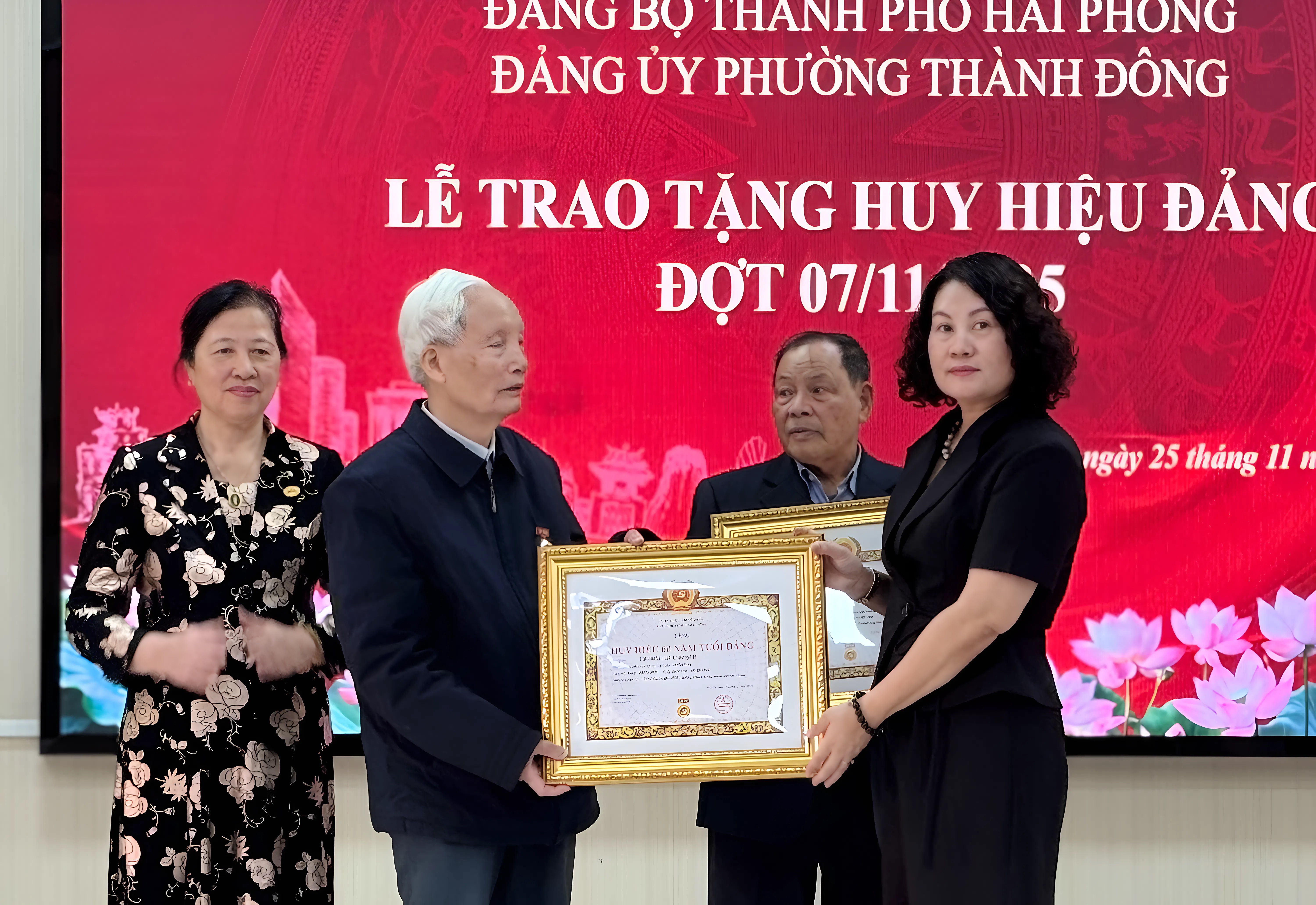 Ngày 25/11, Đảng ủy phường Thành Đông tổ chức Lễ trao tặng Huy hiệu Đảng đợt 7/11/2025 cho các đảng viên thuộc Đảng bộ phường. Dự buổi Lễ có các đồng chí Ngô Thị Thanh Hoà - Thành uỷ viên, Bí thư Đảng ủy, Chủ tịch HĐND phường, đồng chí Phạm Minh Thăng - Phó Bí thư Thường trực Đảng ủy; đồng chí Nguyễn Tuấn Ngọc - Phó Bí thư Đảng uỷ, Chủ tịch UBND phường