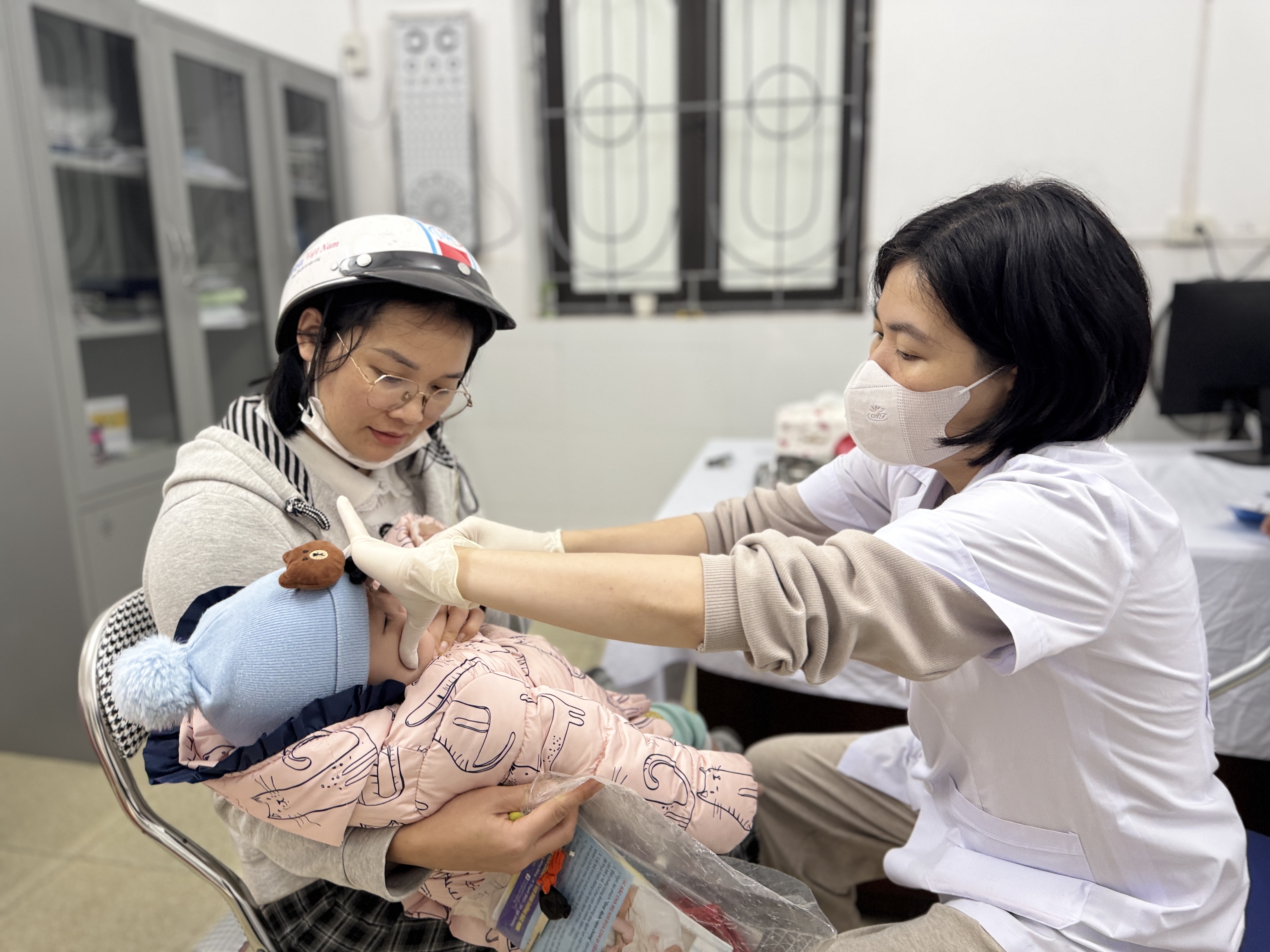 Lãnh đạo UBND phường Thành Đông đến thăm và kiểm tra một số điểm uống VitaminA trên địa bàn phường.