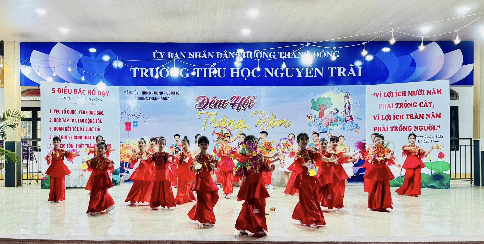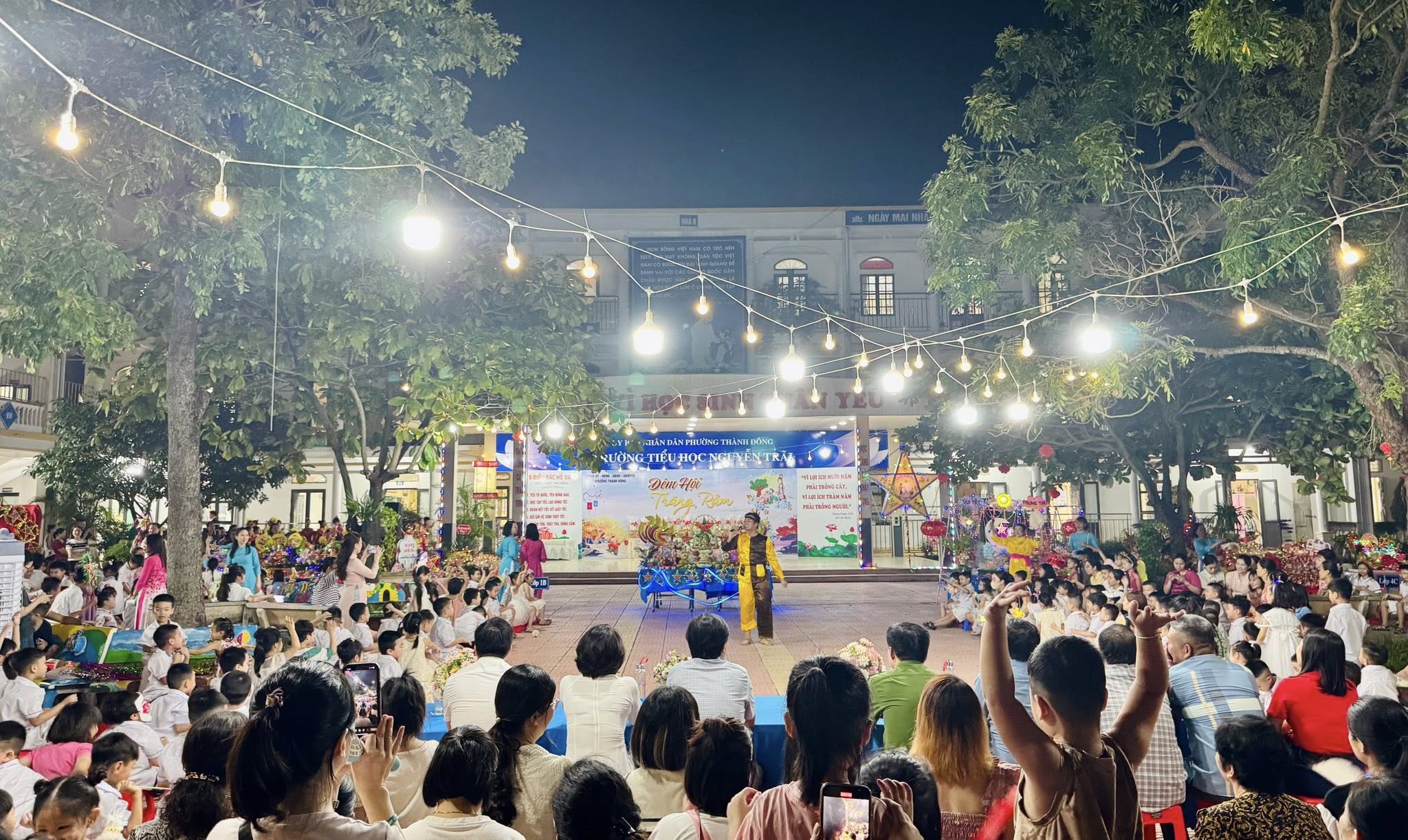 Đặc biệt, Điểm nhấn của chuỗi hoạt động là đêm hội “Trăng Rằm” được tổ chức tại sân Trường Tiểu học Nguyễn Trãi vào tối cùng ngày. Gần 800 em nhỏ trong trang phục rực rỡ đã tụ họp, tay cầm lồng đèn lấp lánh, tạo nên một bức tranh lung linh dưới ánh trăng. Đêm hội diễn ra sôi nổi với màn múa lân đặc sắc, các tiết mục văn nghệ do học sinh biểu diễn, tạo nên một không gian ấm áp và tràn đầy năng lượng.