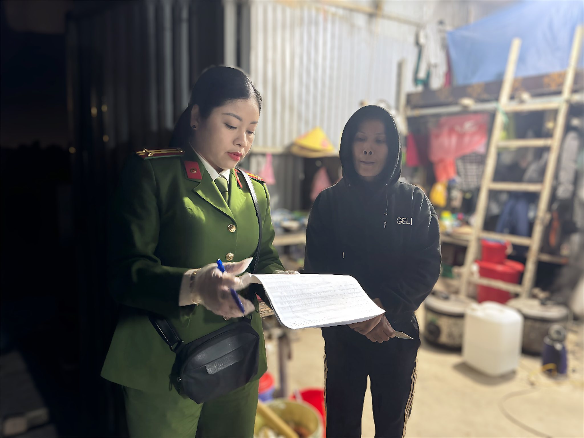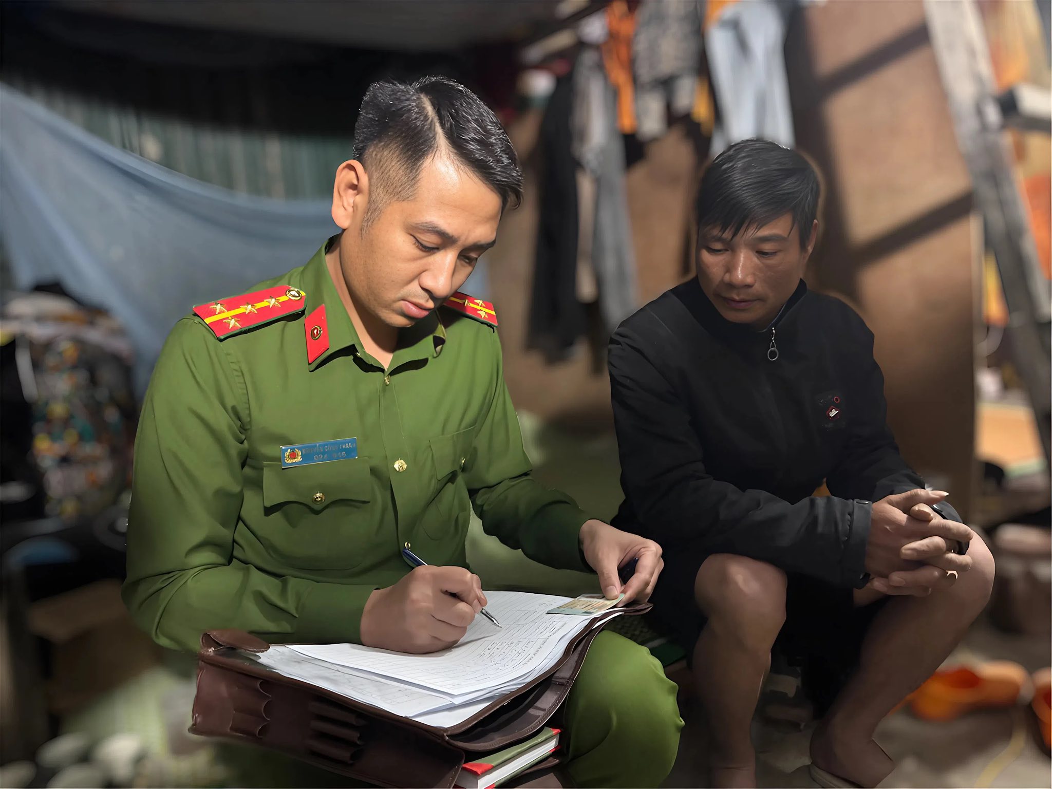 Công an phường Thành Đông tăng cường kiểm tra, test ma túy tại khu lán ở tập thể công nhân