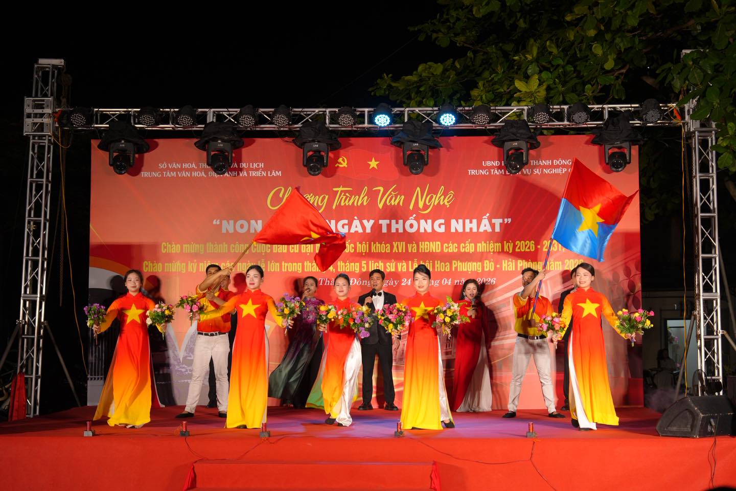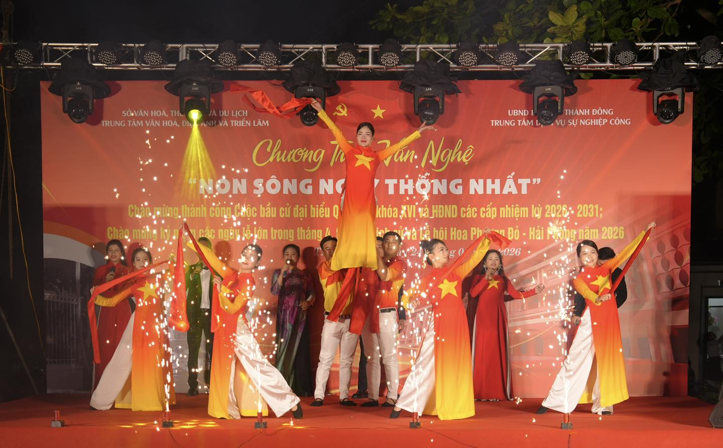 Tối ngày 24/4, UBND phường Thành Đông phối hợp Trung tâm Văn hóa, Điện ảnh và Triển lãm, Sở Văn hóa Thể thao và Du lịch thành phố tổ chức Chương trình văn nghệ chào mừng thành công Cuộc bầu cử đại biểu Quốc hội khóa XVI và HĐND các cấp nhiệm kỳ 2026–2031; đồng thời hướng tới kỷ niệm các ngày lễ lớn trong tháng 4, tháng 5 lịch sử và hưởng ứng Lễ hội Hoa Phượng Đỏ – Hải Phòng năm 2026.